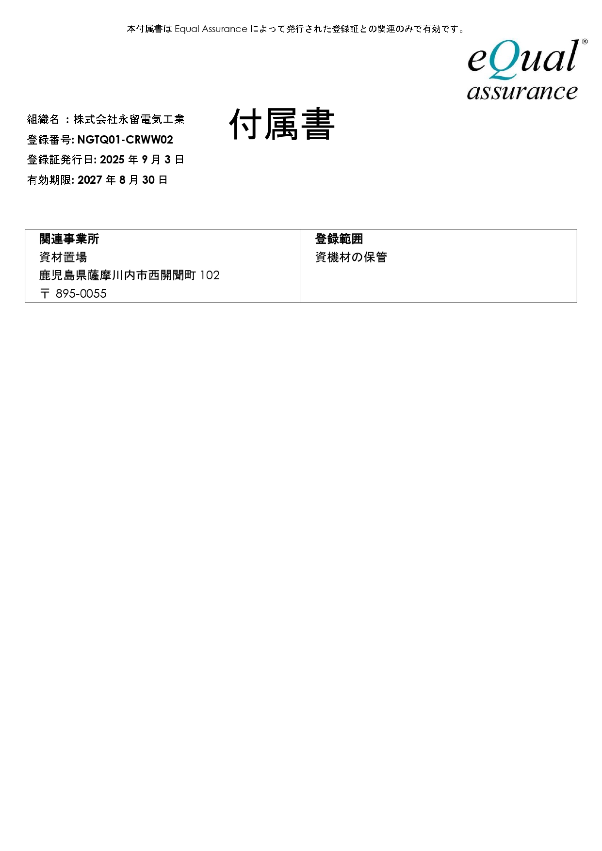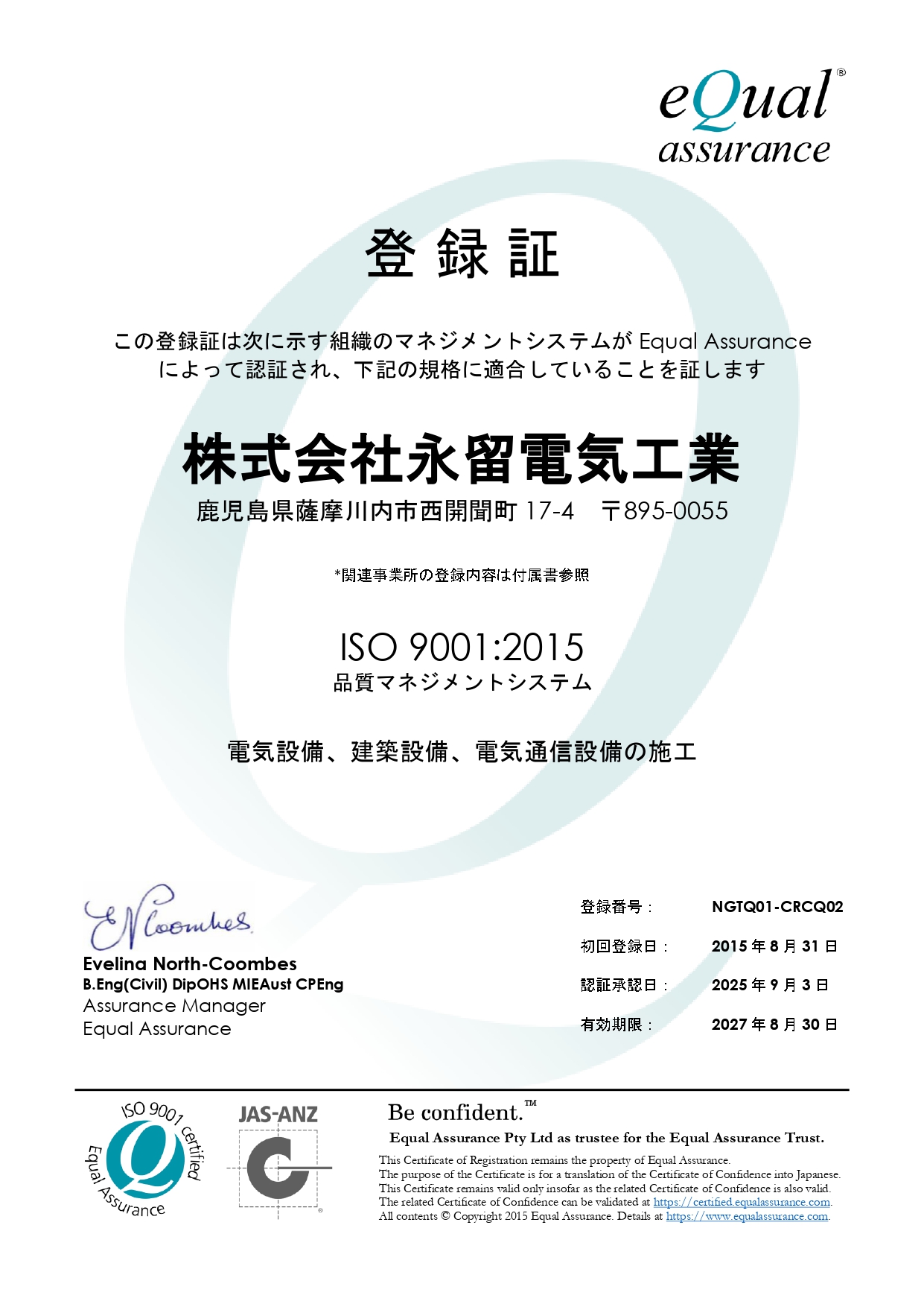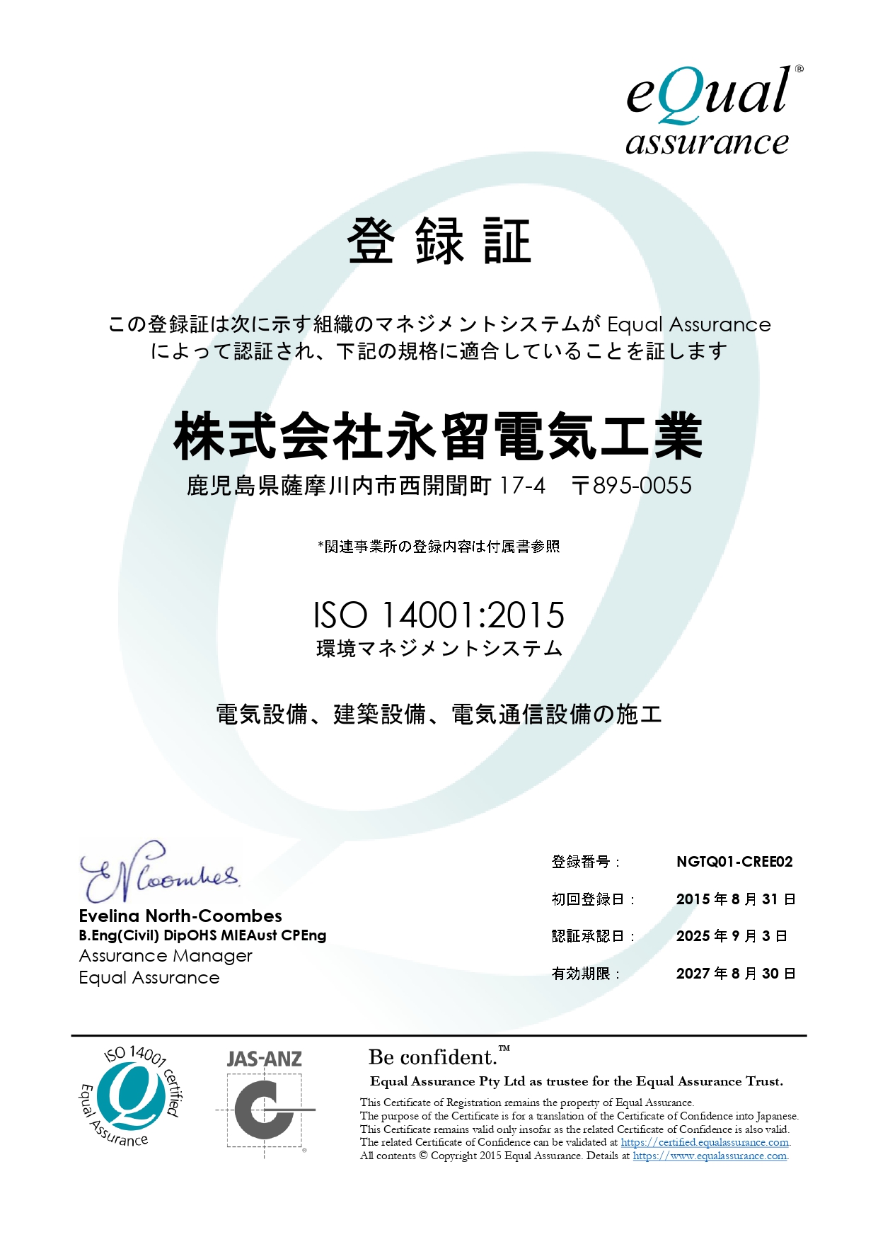 認証取得を完了したことを報告させていただきます。
